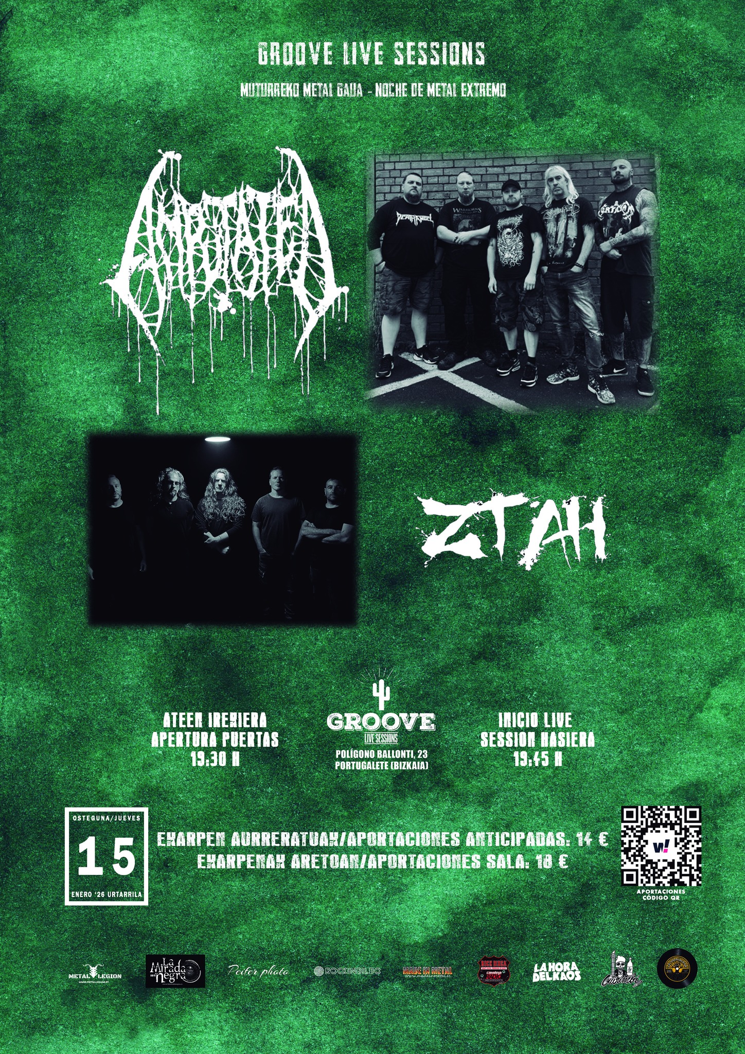 15 de enero, jueves: Amputated + Ztah en Groove - Portugalete Aportaciones anticipadas: 14 € + gastos de gestiónhttps://woutick.com/es/entradas/amputated-ztah Aportaciones en sala: 18 € La formación británica AMPUTATED descargará su brutal death grind en Groove a comienzos de 2026. Formada en Bristol en 2002, dejó tres discos de larga duración, además de un directo, un EP y...
