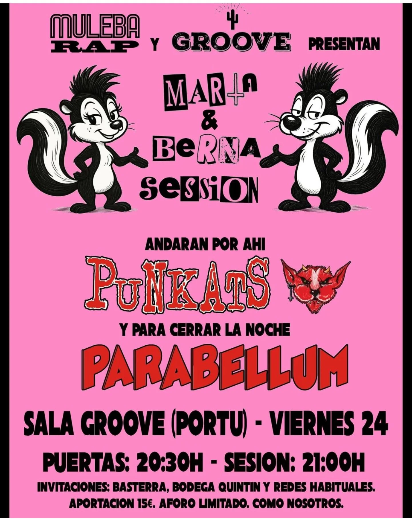 24 de octubre, viernes: Parabellum + Punkats en Groove - Portugalete Aportaciones anticipadas: 15 € Basterra taberna y Bodega Quintín de Barakaldo, además de redes habituales del grupo. Aportaciones en sala: 15 € (si no se venden todas anticipadas) ⚡️ URRIAK 24 DE OCTUBRE ⚡️ ¡Atención chavalería! El viernes 24 de octubre recibiremos en Groove...